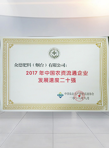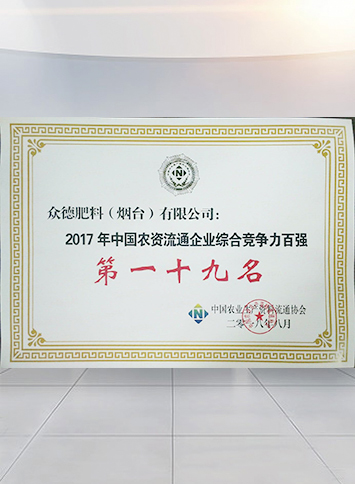 2017年中國農(nóng)資流通企業(yè)綜合競爭力百強(qiáng)第19名