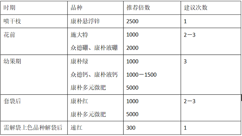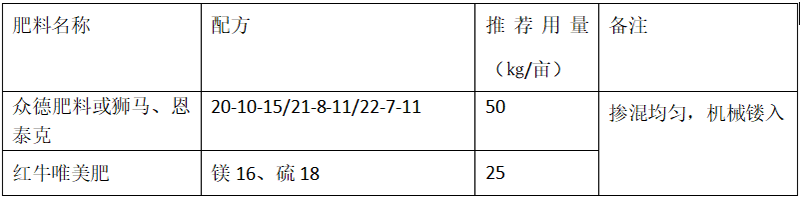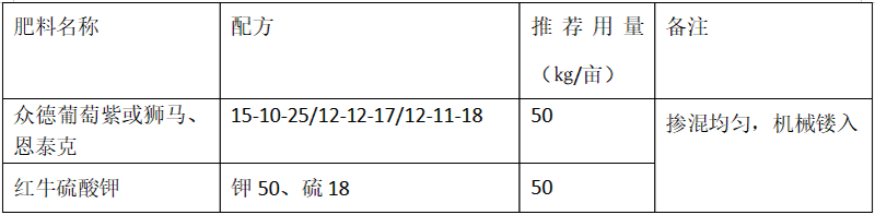 ?。?)推薦施肥套餐(根據(jù)目標(biāo)產(chǎn)量、地域、品種、樹勢、樹齡、地力等適當(dāng)調(diào)整)